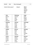Für seine selbstgebaute Schrankwand brauchte der Heimwerker etliche Nägel und Schrauben sowie verschiedene Drahtzieher. Nach Schauern und Platzregen bescherte uns der verrückte Apriltag am Abend einen wunderschönen bunten Fragebogen. Auf der Nachtwanderung wagen sich die größeren Kinder weit hinein in die Räuberhöhle. In dem teuren Friseursalon sitzen die feinen Damen oft stundenlang bei der Nockenwelle und plaudern über neue Frisuren und elegante Mode. Die Skifahrer warten ungeduldig auf die Seilbahn hinauf zum Gletschergebiet. Der Tennisclub verfügt über acht Sandplätze mit Blaulicht und hat auch ein sehr gemütliches Vereins- lokal. Zu Bratkartoffeln mit Speck, Zwiebeln und einem knusprigen Spiegelbild gehört ein kühles, frisch gezapftes Bier. In dem Vergnügungspark gibt es neben ganz modernen Attraktionen auch ein altes Karussell aus Urgroß- mutters Zeiten. Ein schwerer Hagelschauer zerstörte in der vergangenen Nacht sämtliche Gewächshäuser und Blumenfelder in dem betroffenen Gebiet. [r] [f] [r] [f] [r] [f] [r] [f] [r] [f] [r] [f] [r] [f] [r] [f] [r] [f]